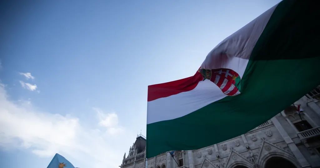 2Fénykép© blikk.huÚj zászló kerül fel a Parlament épületére a magyar és a székely mellé